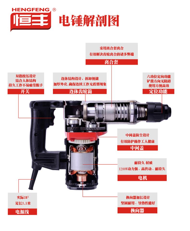 钻孔能力:混凝土26mm 工作方式:锤钻,铲凿