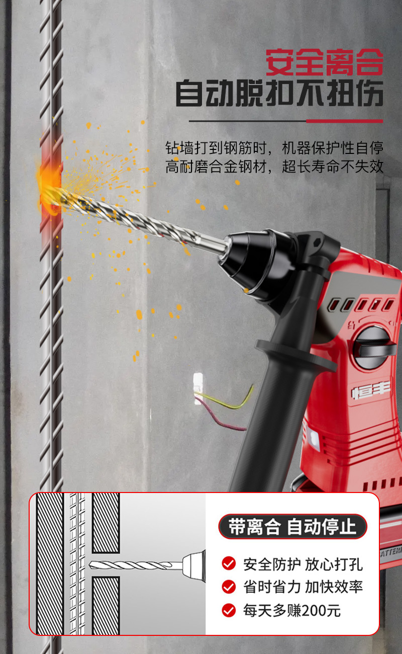最佳钻孔范围:6-12mm 最大钻头直径:混凝土22mm